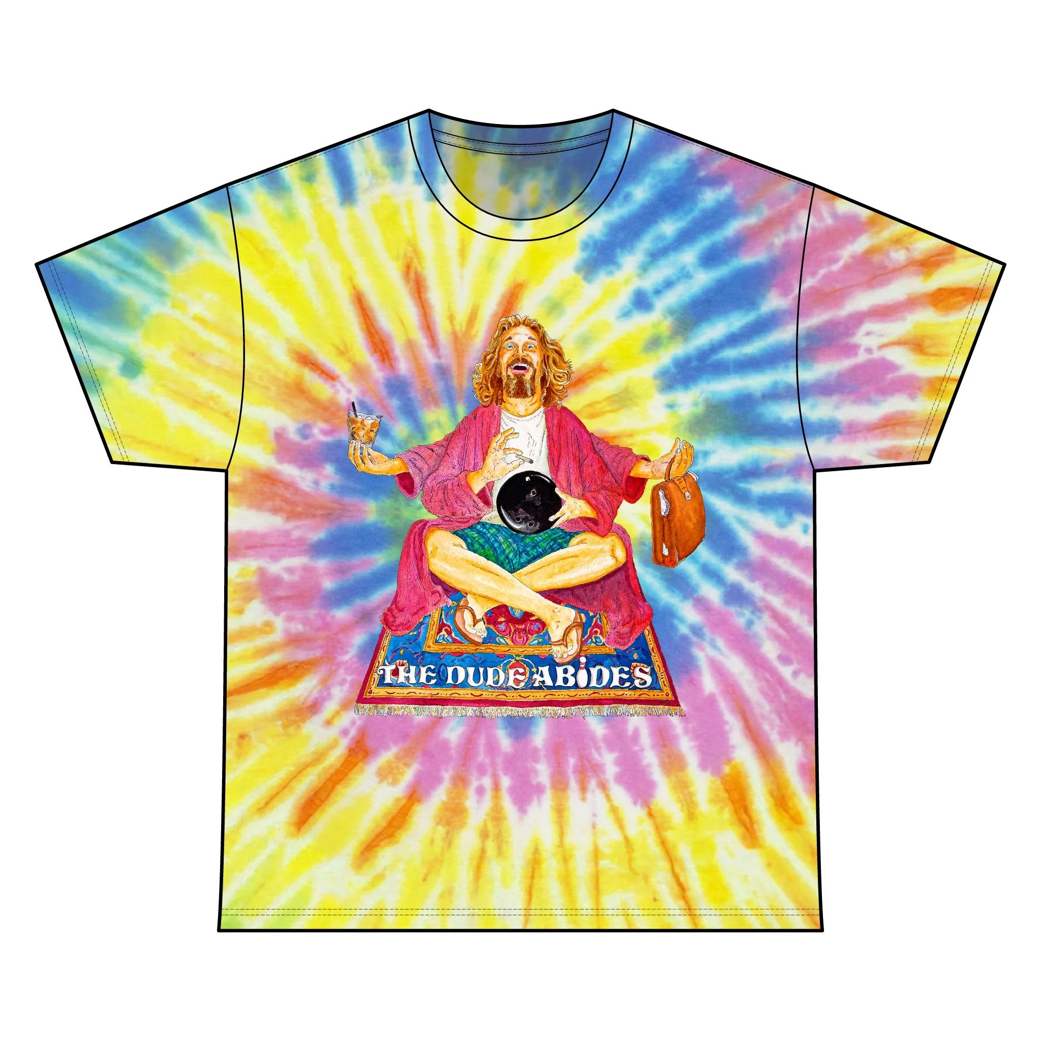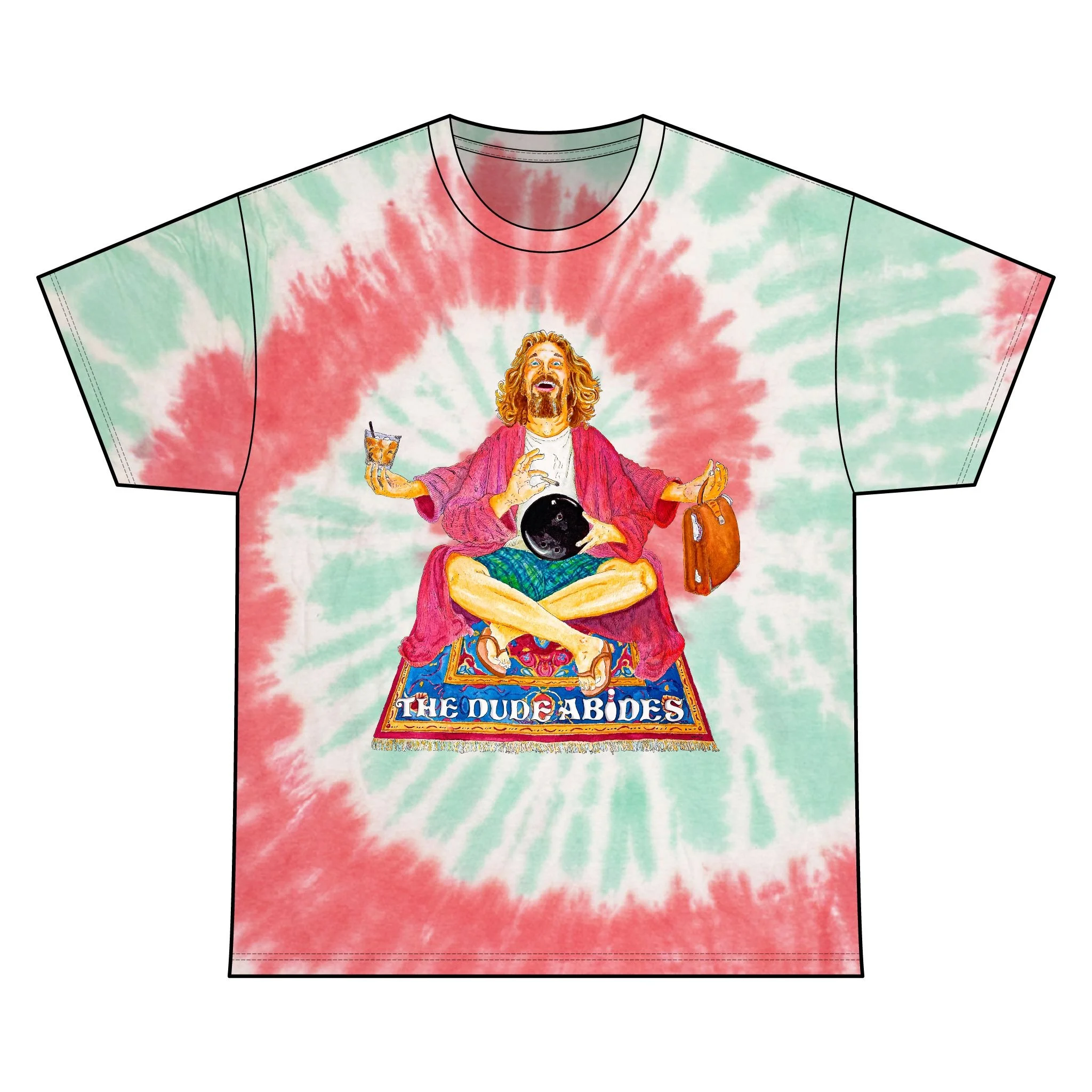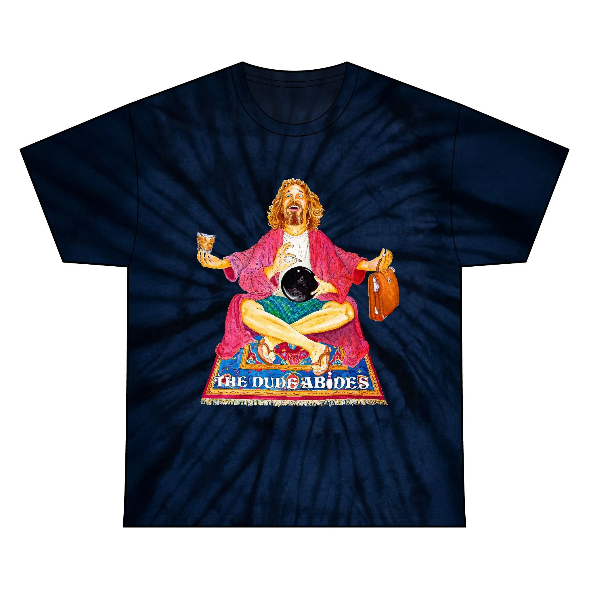 Featuring Joshy’s original The Big Lebowski Zen Dude watercolor painting, this unisex tie dye tee radiates laid-back energy worthy of The Dude himself. The artwork depicts The Dude surrounded by his “holy artifacts” — White Russian, joint, bowling ball, and the ringer — all while meditating on a Persian rug that reads “The Dude Abides” in watercolor.