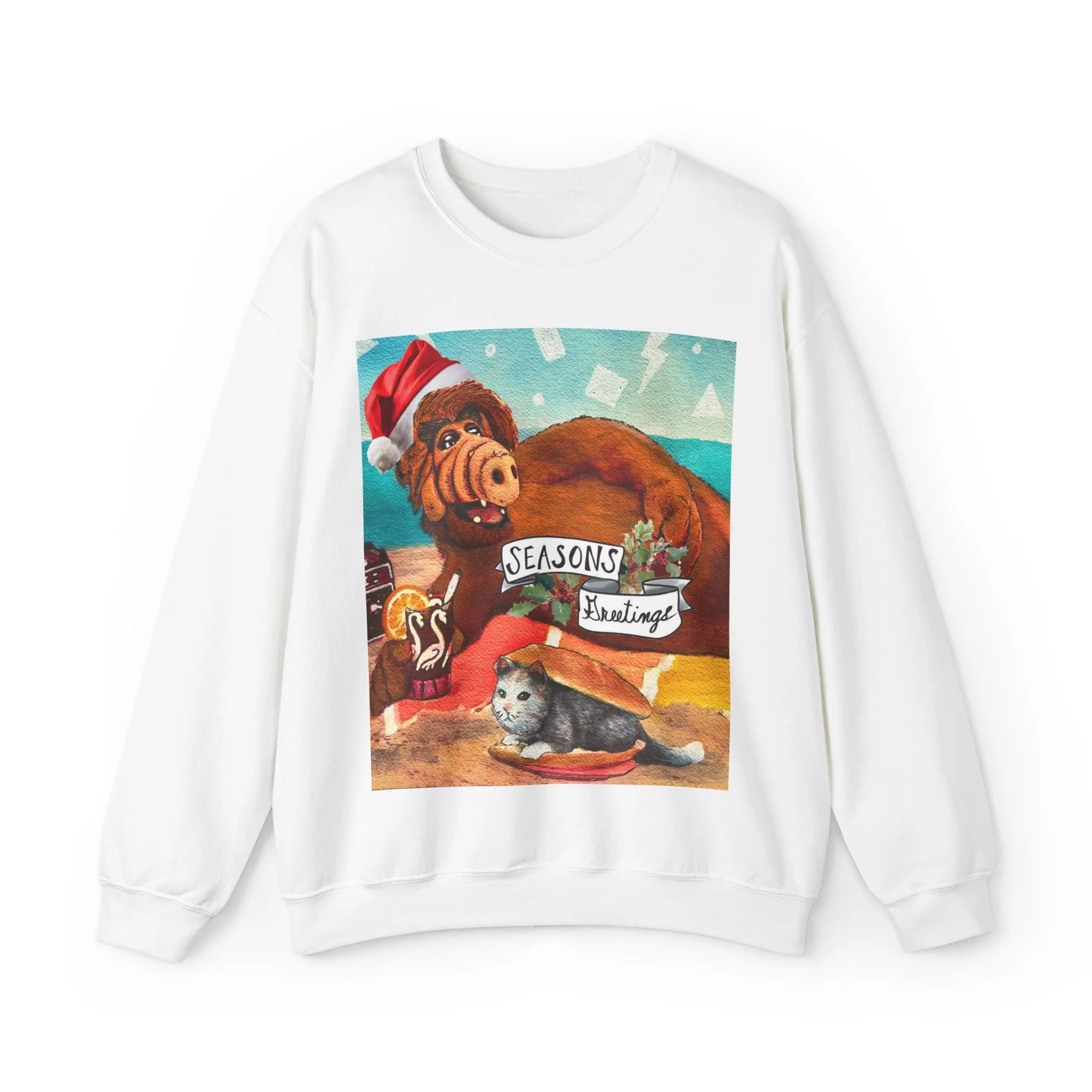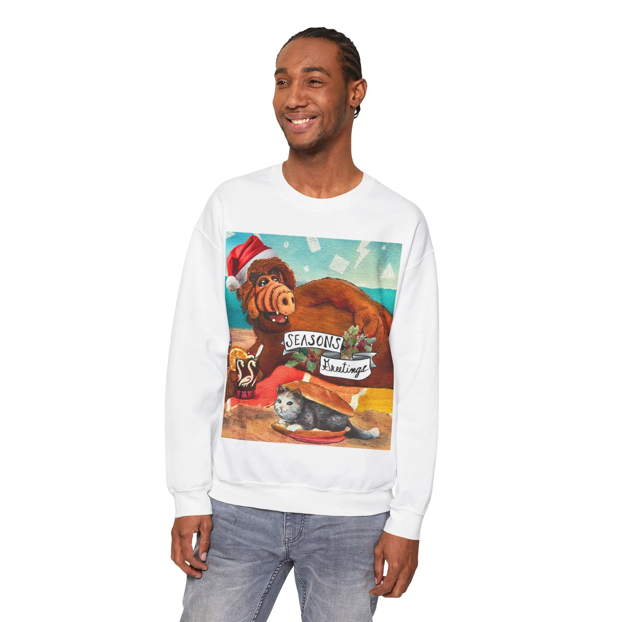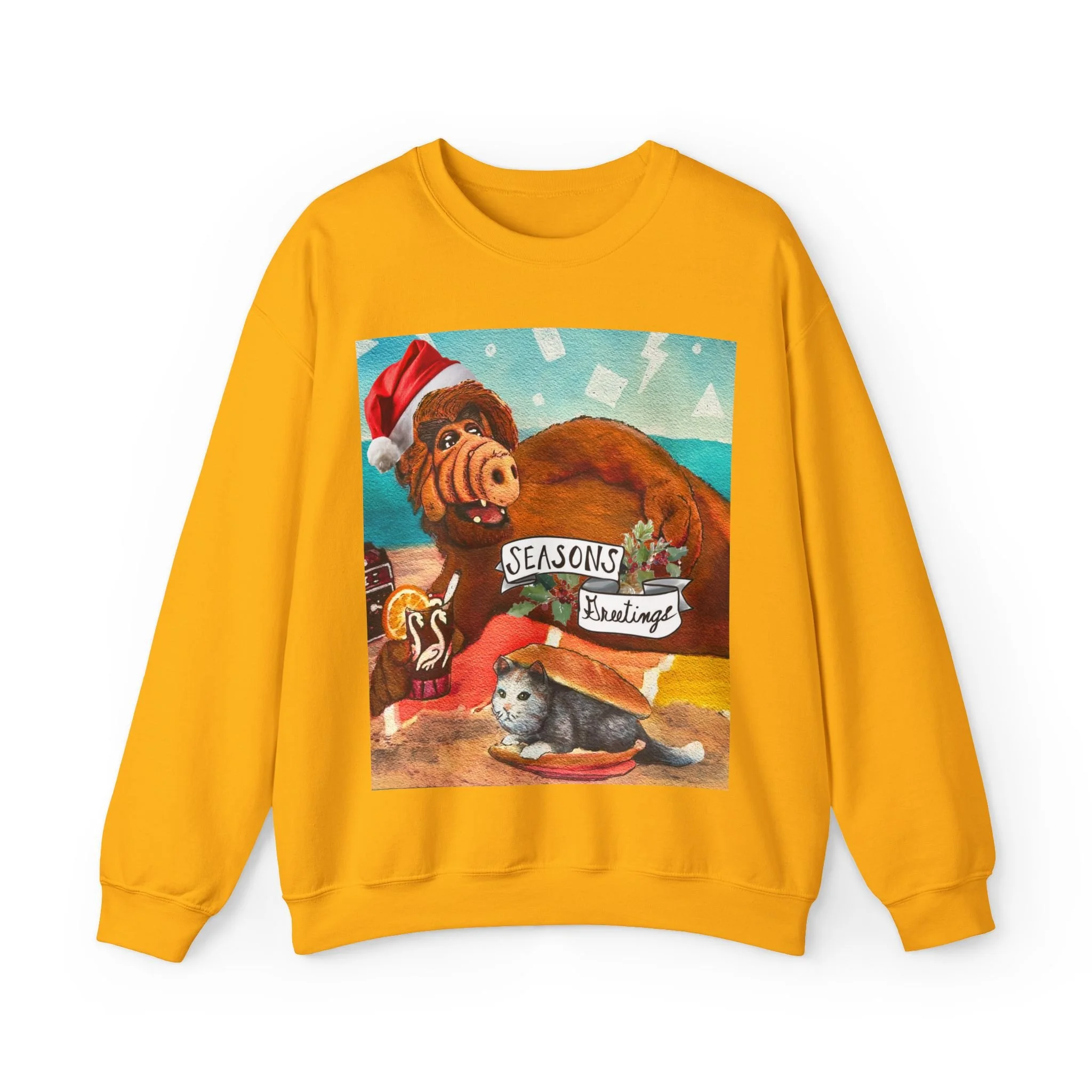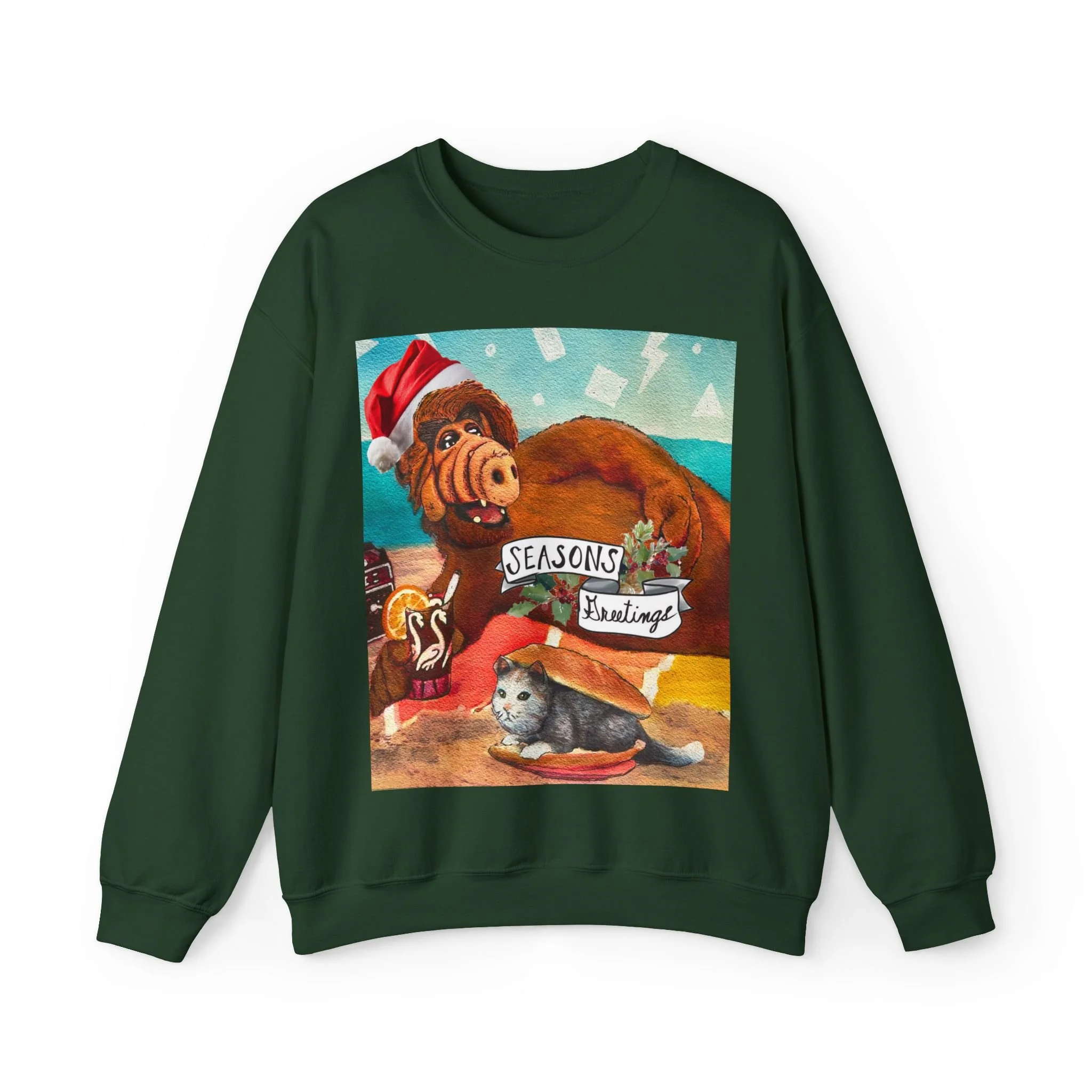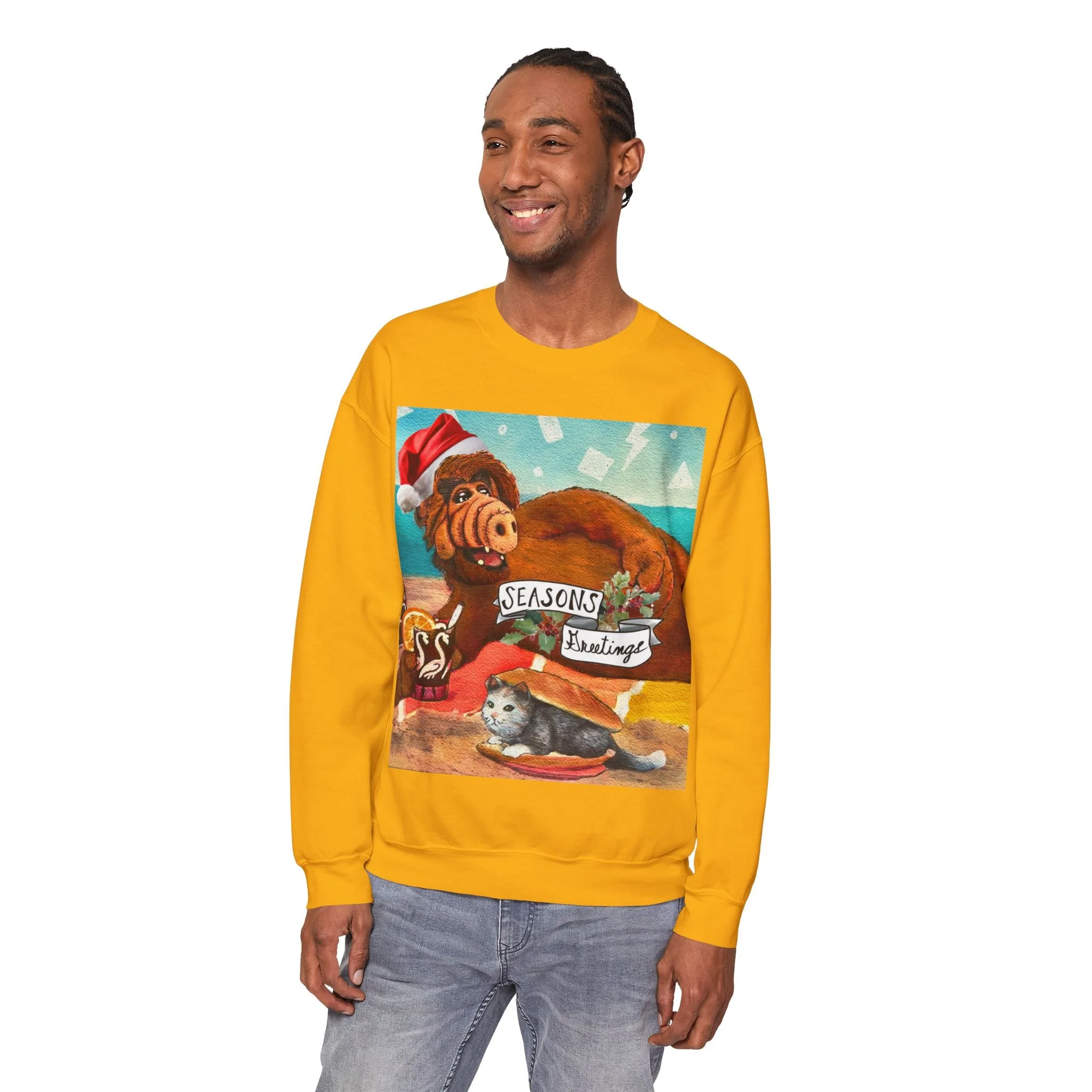 ALF with Cat Sandwich Christmas Sweatshirt - 80s TV Alien Holiday Pullover