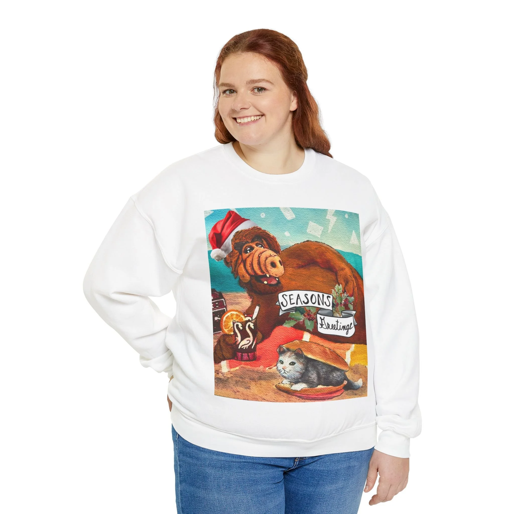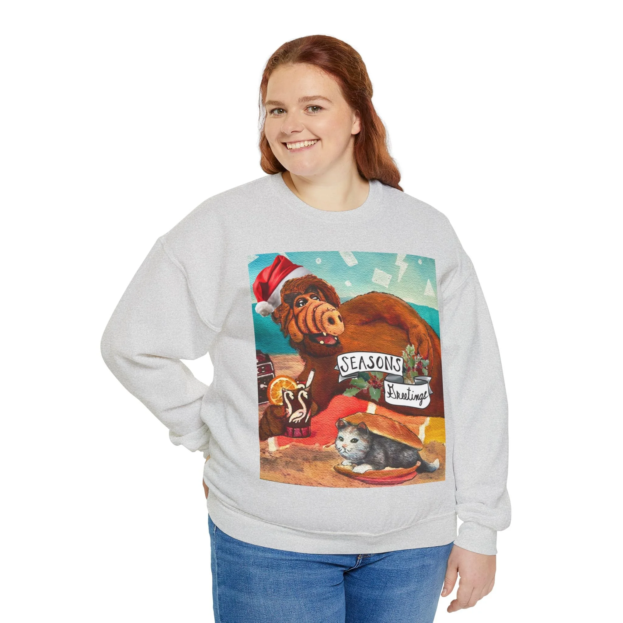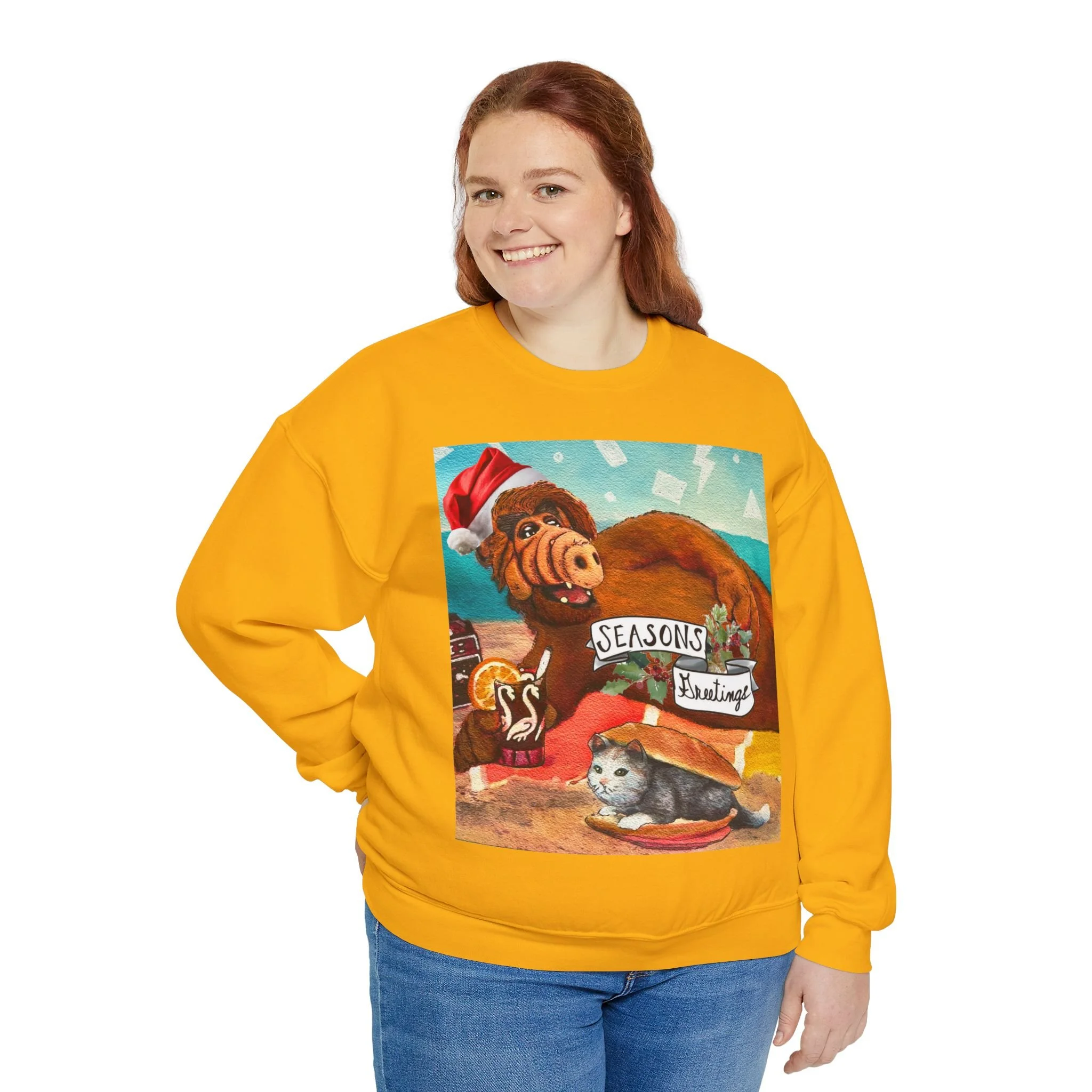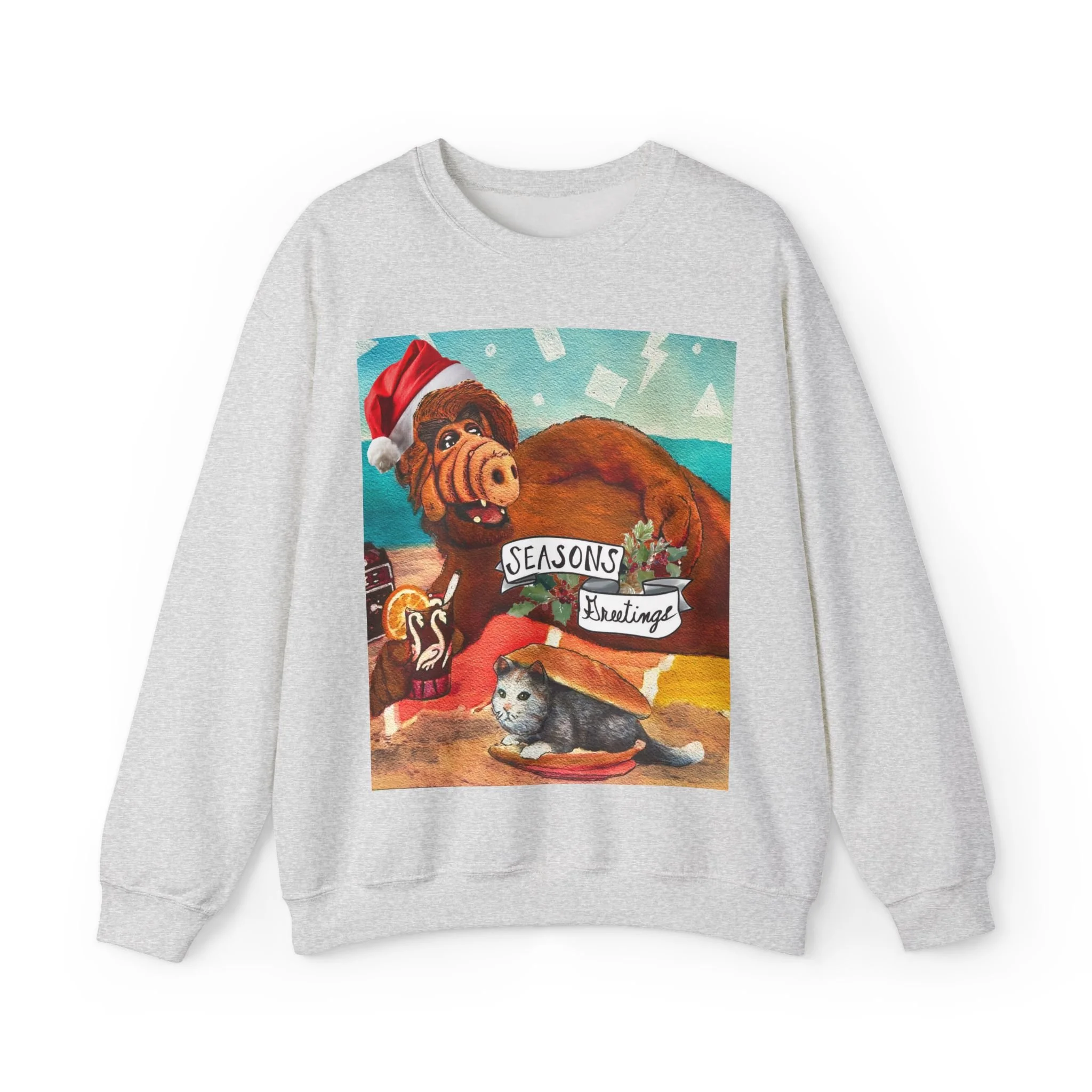 ALF with Cat Sandwich Christmas Sweatshirt - 80s TV Alien Holiday Pullover