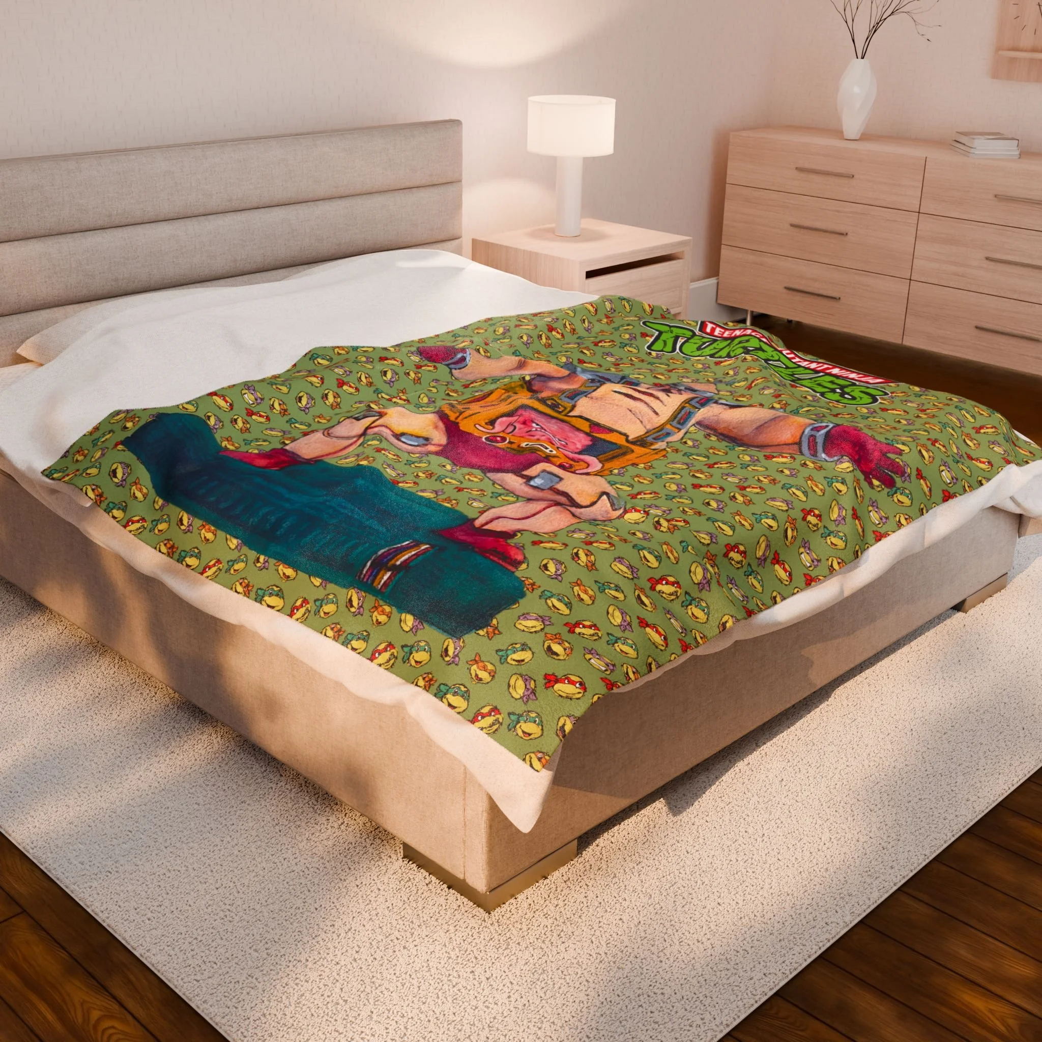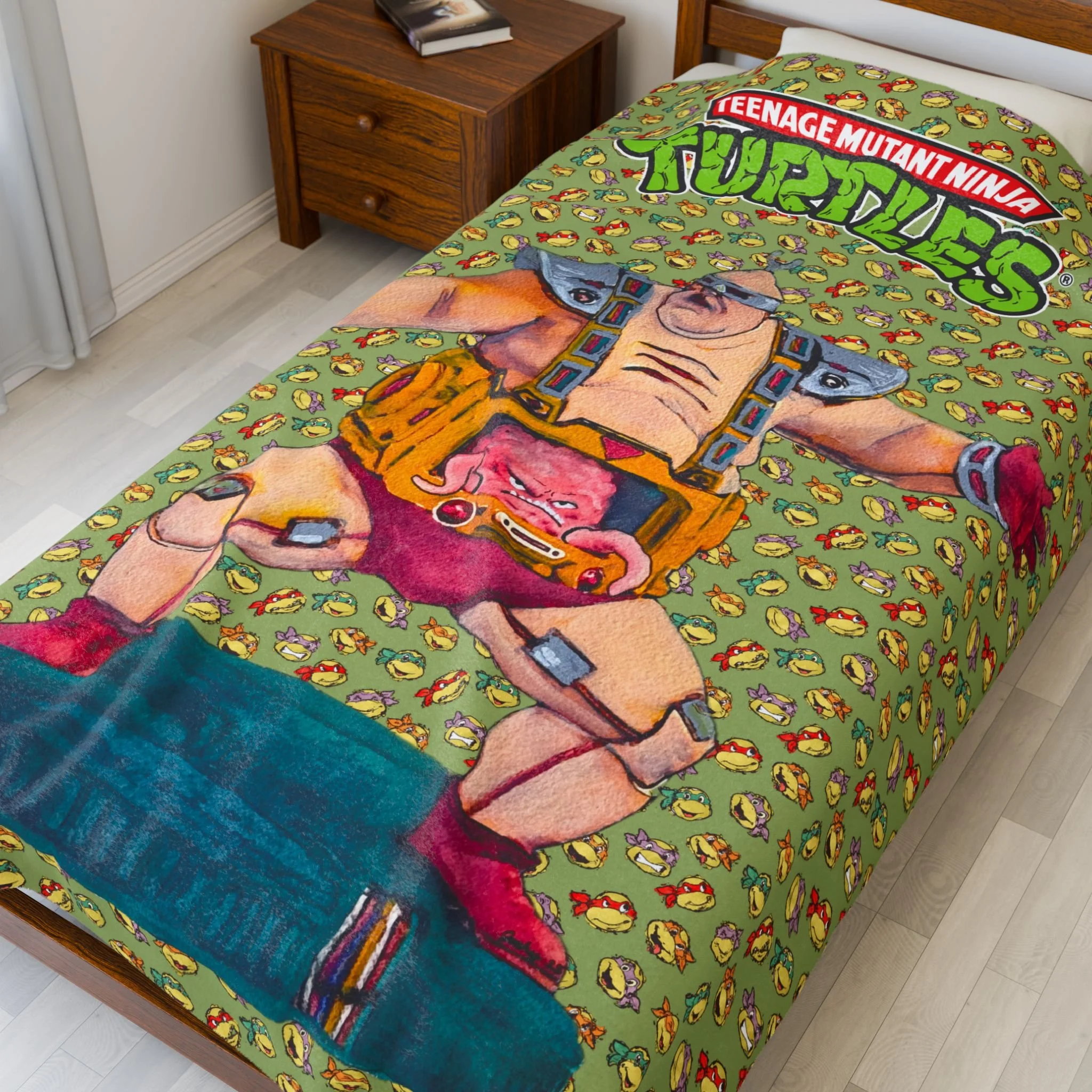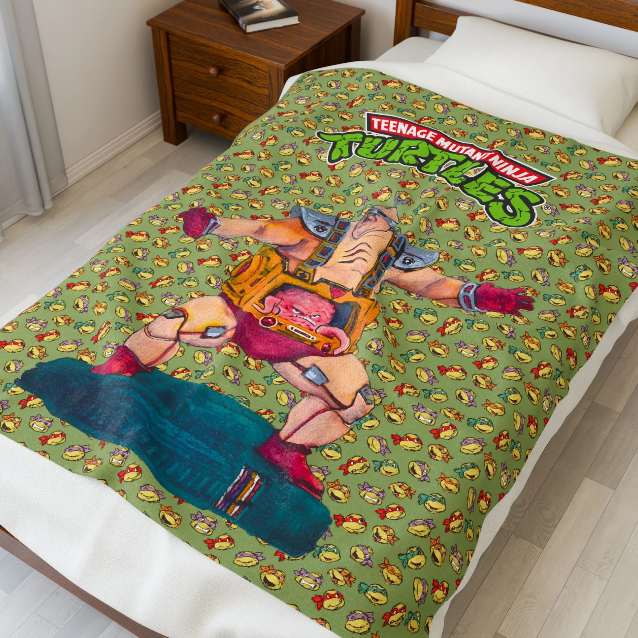Teenage Mutant Ninja Turtles Krang Velveteen Plush Blanket - Evil Brain TMNT Vintage Green Throws