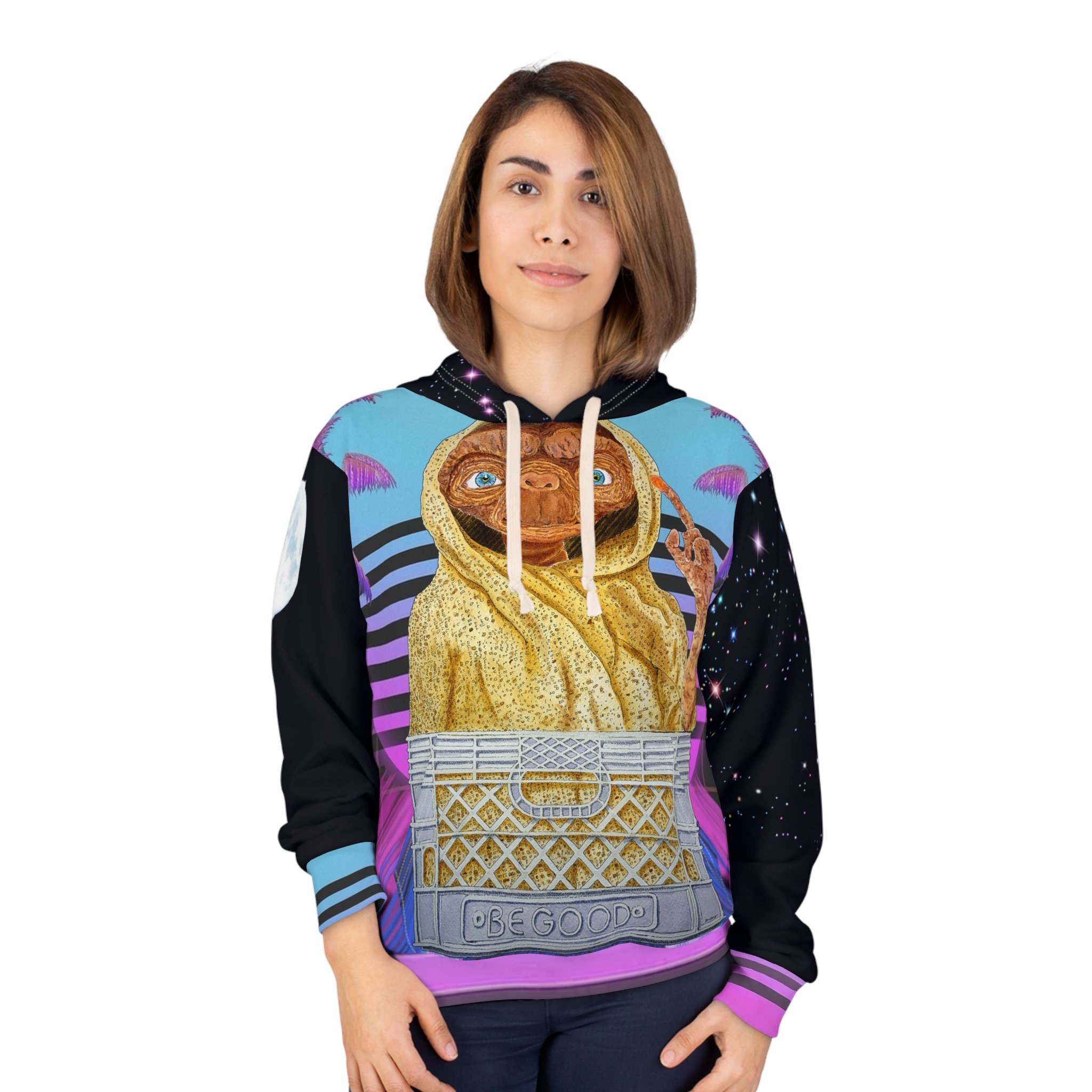 The Ultimate 80s E.T. Be Good Vaporwave Indie Art Hoodie - 1980s Neon California Sunset Alien ET Retro Unisex Hooded Sweatshirt