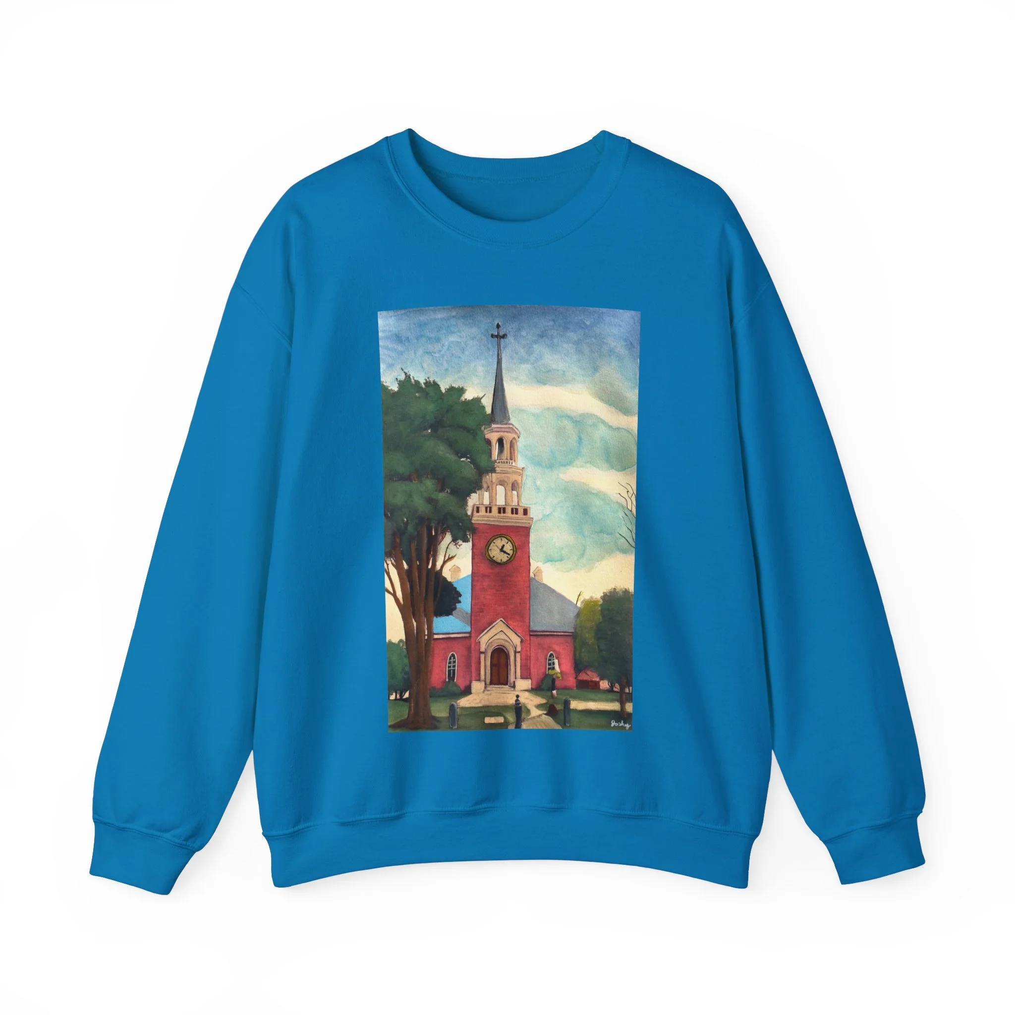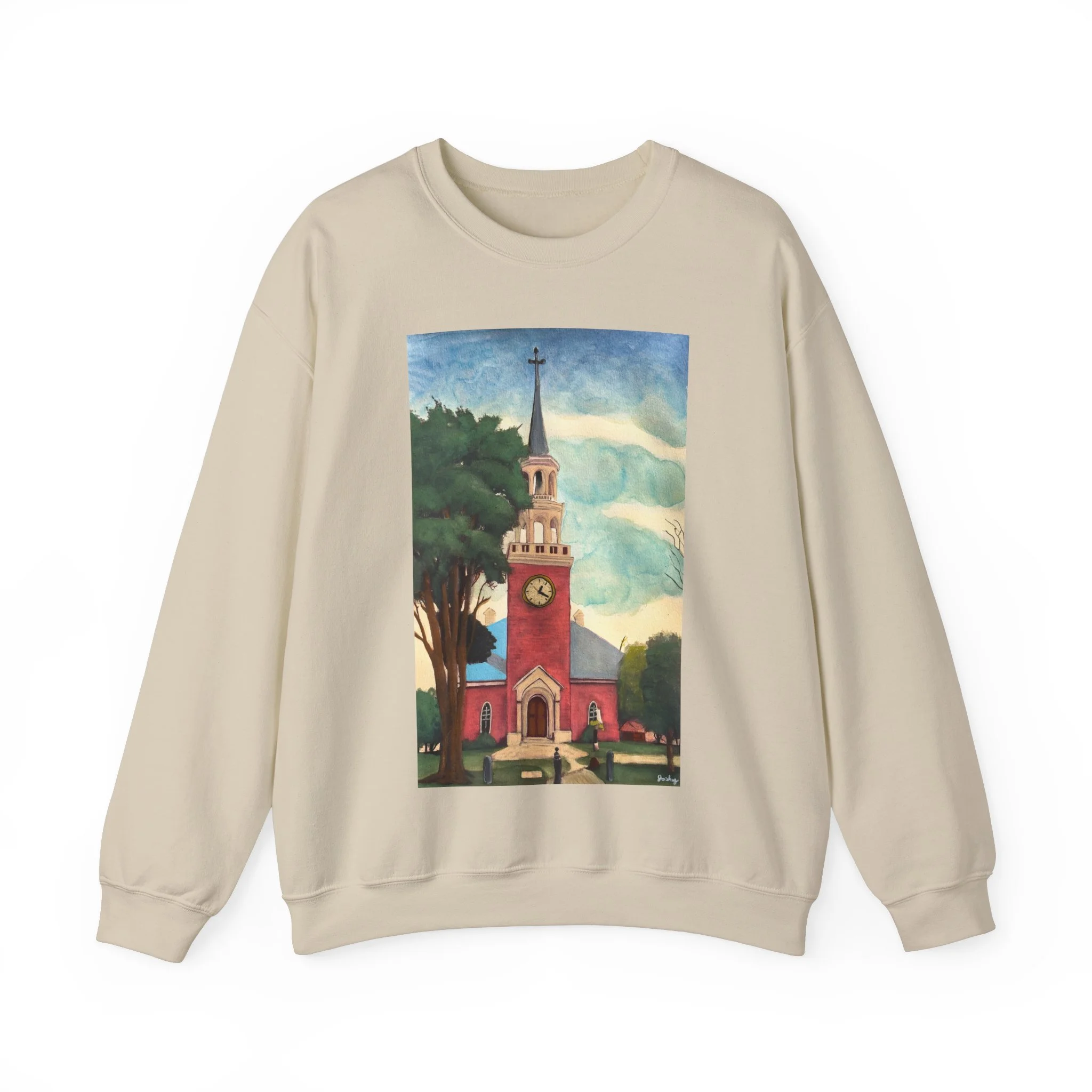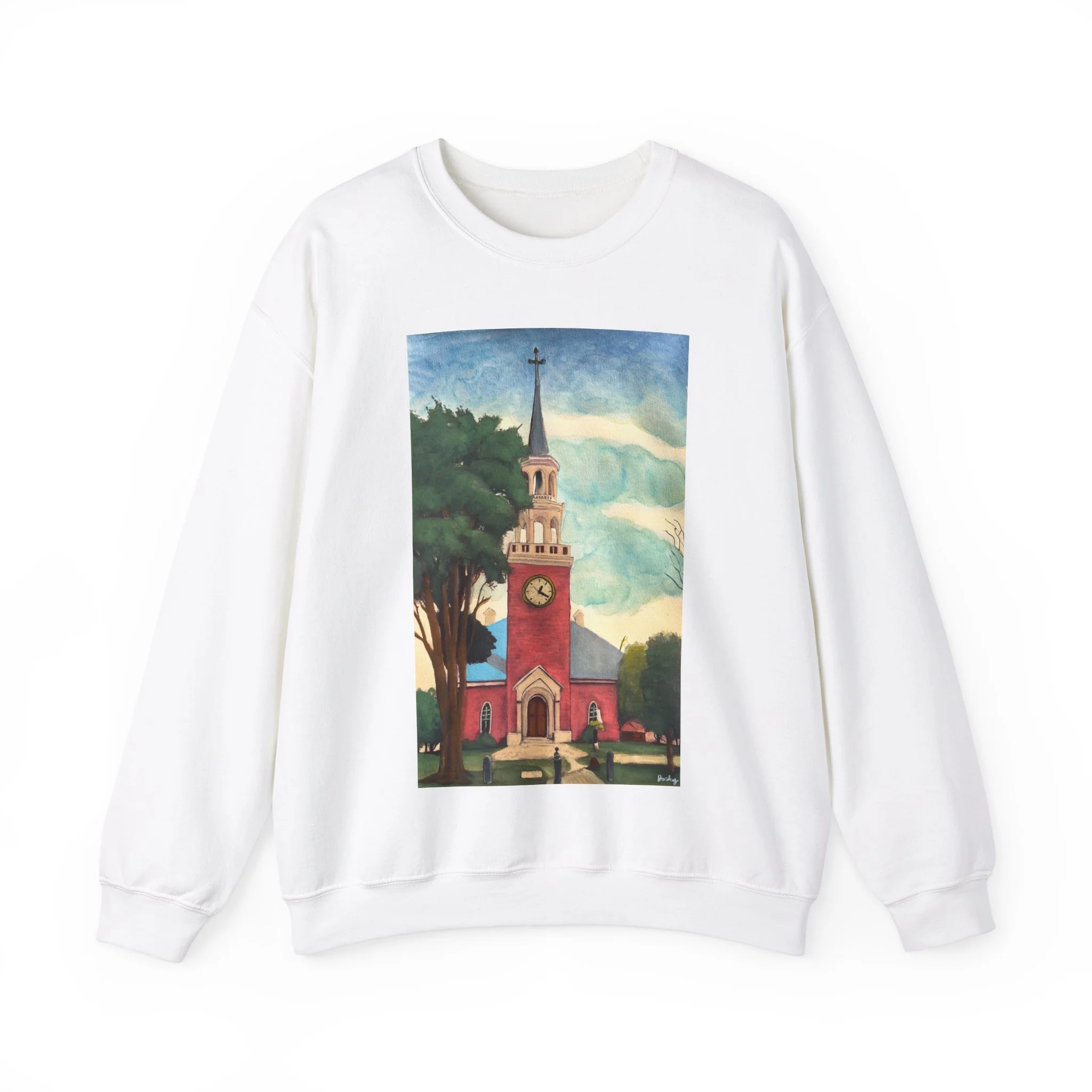 This unisex heavy blend crewneck sweatshirt is the perfect blend of comfort and style. Crafted with a medium-heavy fabric, it offers a cozy feel for those chilly days. The vibrant design featuring a picturesque clock tower adds a charming touch, making it an ideal piece for casual outings or cozy evenings at home. It's perfect for art lovers, community enthusiasts, or anyone who appreciates a unique aesthetic. Whether you're celebrating a holiday, an art festival, or simply enjoying a weekend, this sweatshirt brings warmth and character to your wardrobe. A thoughtful gift for birthdays, holidays, or just because, it’s ideal for adults looking for a stylish and meaningful addition to their collection.