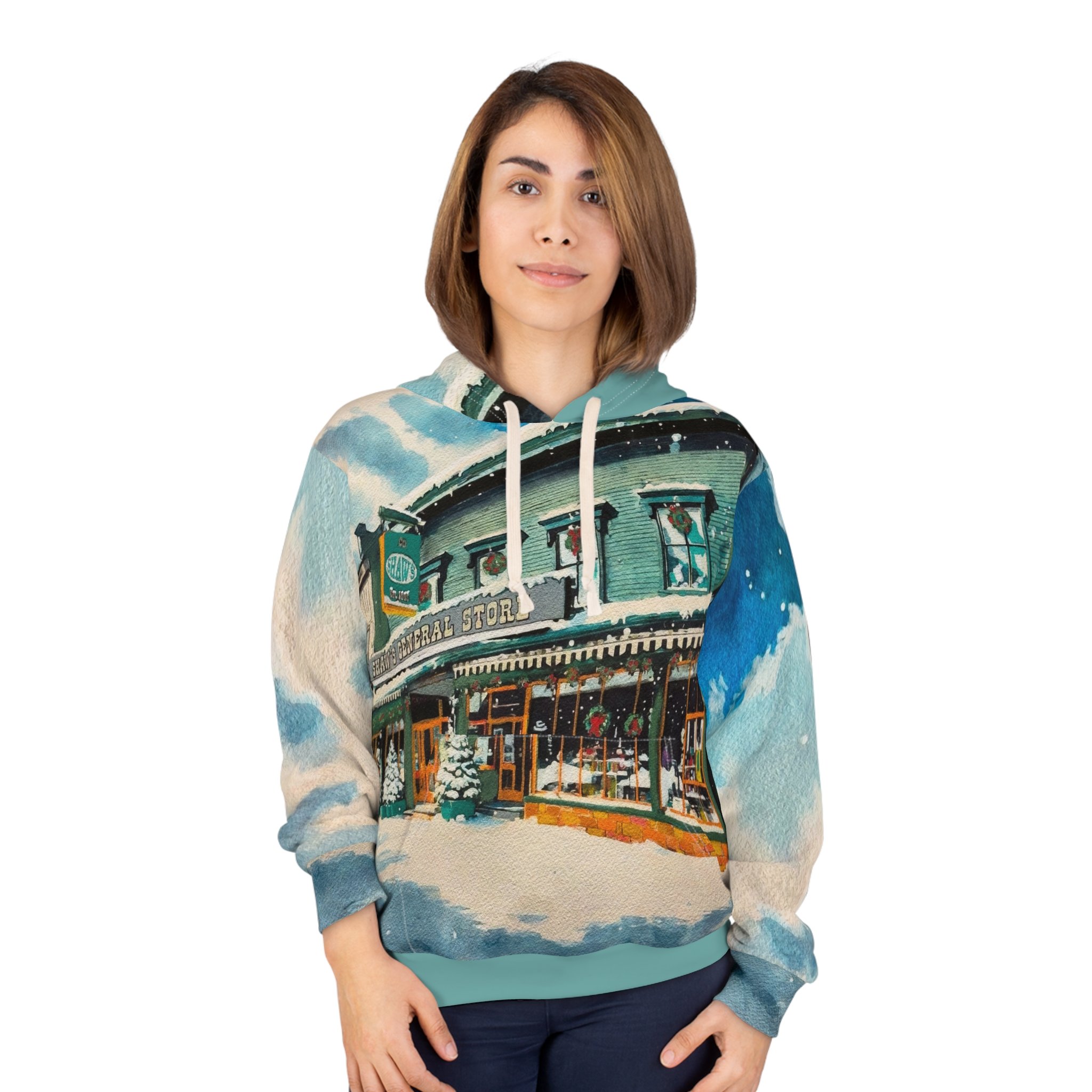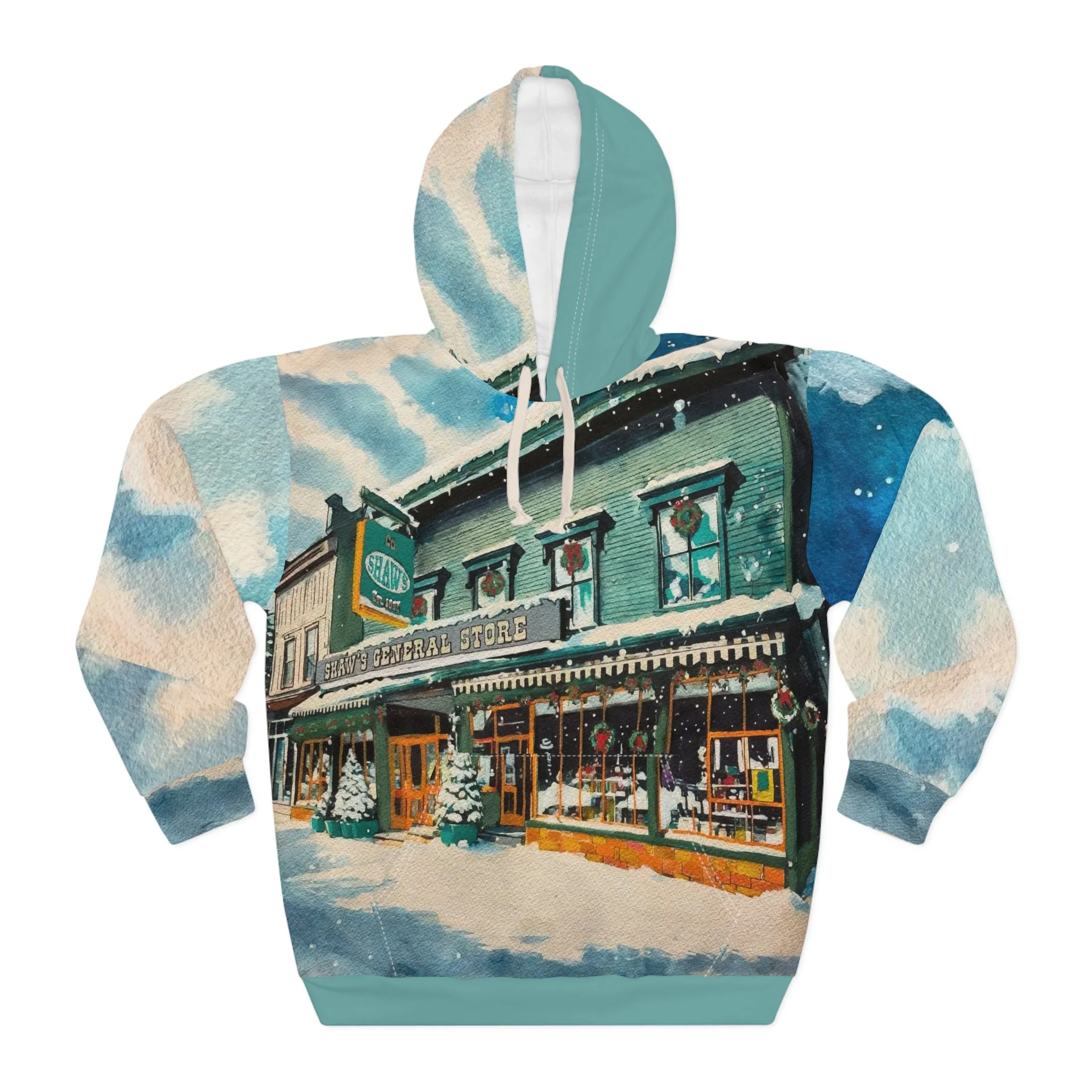This Pullover Hoodie is made for warmth and comfort. Made to be easily customizable without white lines at the seams, this all-over print pullover hoodie is waiting for you to add a great design and it instantly becomes fashionable. It features a large front pocket, a hood with a drawstring, and is custom cut and sewn.